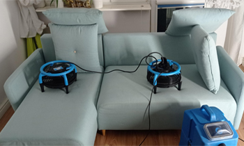 8. Suszenie tapicerki (opcjonalnie) - w razie potrzeby stosujemy specjalistyczne wentylatory lub dmuchawy, które przyspieszają suszenie – dzięki temu mebel nadaje się do użytku najczęściej tego samego dnia.
